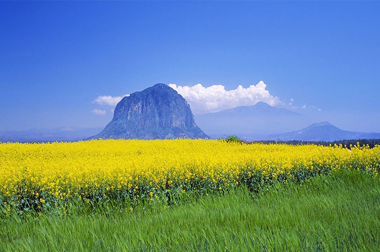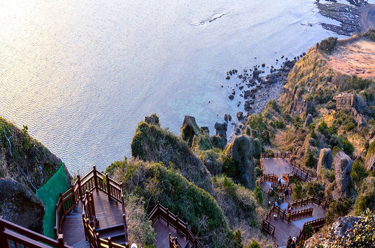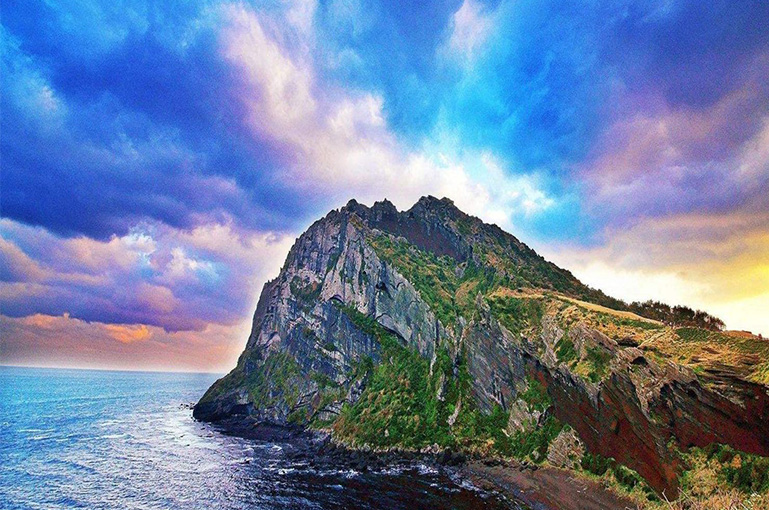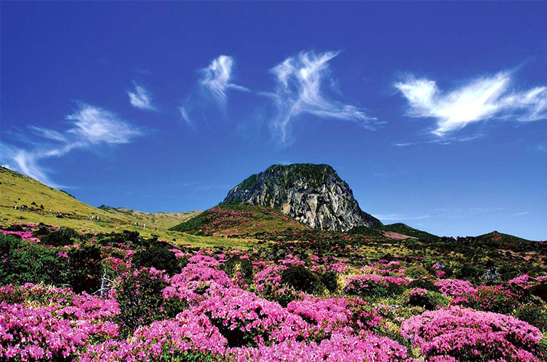 景点介绍:城山日出峰是济州岛著名的自然景点,也是一座罕见的海中火山体。登上峰顶,不仅可以欣赏到壮丽的日出景色,还能俯瞰济州岛东部的海岸线。春天时,杜鹃花和油菜花盛开,景色尤为迷人。
